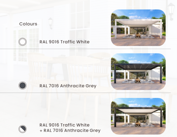 Pergo Group offers a versatile range of pergolas that cater to diverse preferences and needs. These pergolas come in two primary configurations: wall-mounted or freestanding. The wall-mounted designs seamlessly integrate with existing structures, while the freestanding ones provide flexibility in placement. Additionally, Pergo Group provides a striking choice of colors, including the classic traffic white and the sophisticated anthracite grey. For those seeking a unique touch, there's the option of a combination of both colors, allowing for a personalized and distinctive look. Whether you prefer the sleekness of a wall-mounted structure or the independence of a freestanding one, coupled with a variety of color options, Pergo Group's pergolas offer both style and functionality.