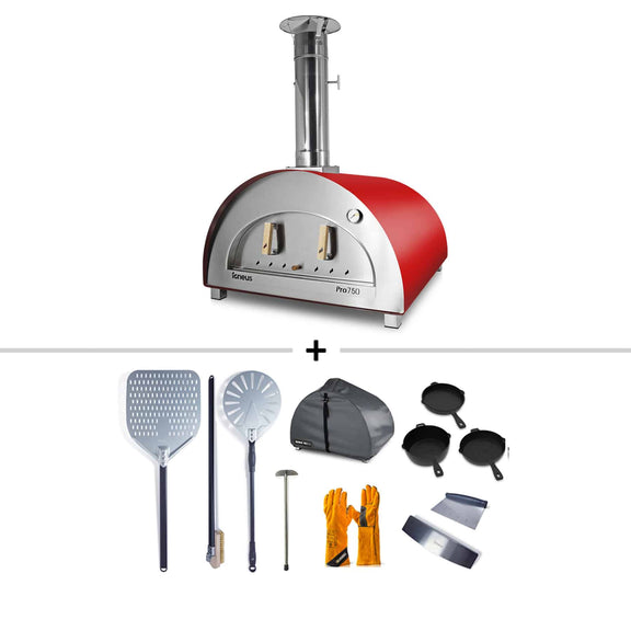 - What’s included: oven, pro 85cm accessory bundle, rake, cover, gloves & 3x cast iron pans